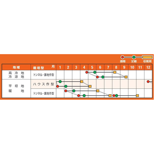 - 肥料計画についてはやや多肥栽培が適し、追肥主体として後半にかけて草勢を維持して、着果した果実をしっかり肥大させて、収量をUPさせるのが良い。