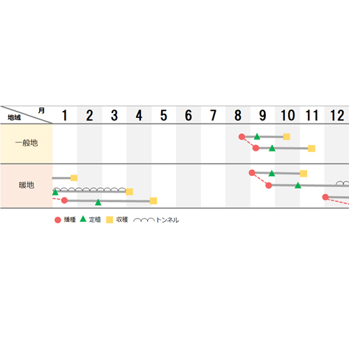 - 低温期は生育の遅延や霜害の発生が想定されるので、温度の下がる作型では早めの被覆を行う。