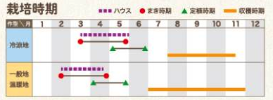 - 畑の準備は1平方メートル当たり果菜用肥料150g、堆肥3~4kgをいれてよく耕しておく。