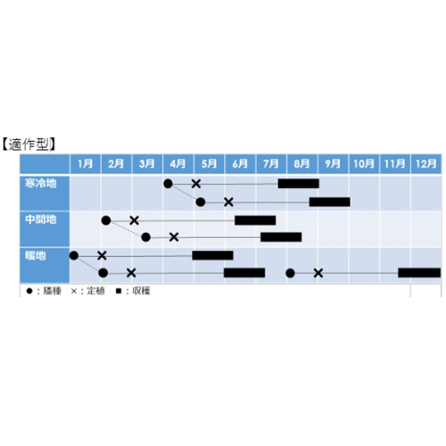 - 積算温度950度目安、交配後40日~収穫できる早生種。