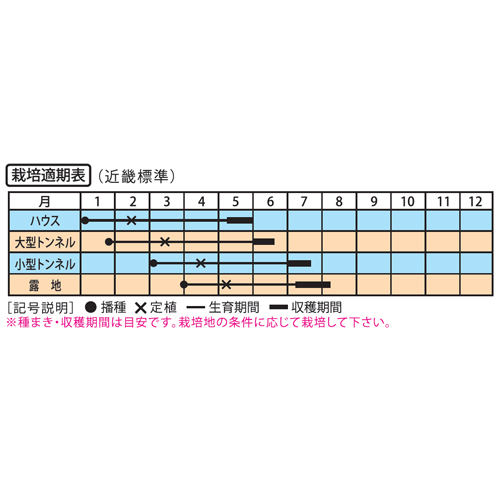 - 果皮が硬く耐裂果性、草勢が強く収穫期鋼鈑の耐暑性に優れる。