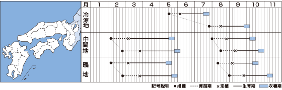 - 外葉形成期~結球初期を中心に、細菌や糸状菌による病害の防除を行う。特に、軟腐病・腐敗病(タール)・べと病の発生に注意する。