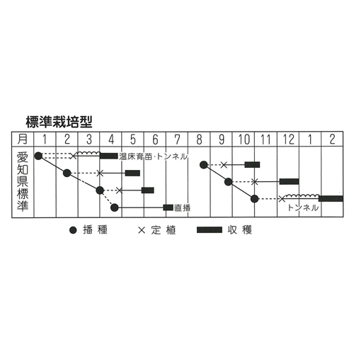 - 草勢は旺盛で適期は15~20℃ならば、45日位で収穫出来る早生種である。