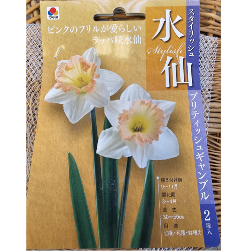 ピンクの覆輪が鮮かな大輪のカップ咲き水仙