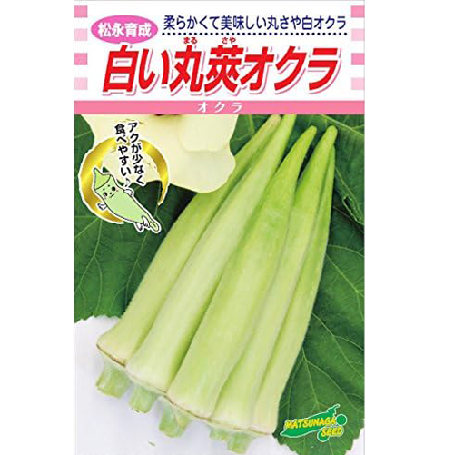 - 果色が白から白緑色の珍しい丸莢オクラです。