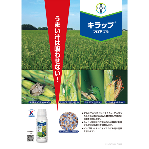 - 稲のカメムシ類、とくに最近問題となっているアカヒゲホソミドリカスミカメ、アカスジカスミカメに対して優れた効果を示します。また、ウンカ類にも高い活性を示します。