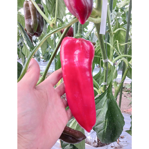 - 青い未熟の状態でも十分おいしく、甘みのつよい大型ピーマンとしても収穫できる