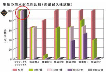 ゴアテックスウェアでは、30,000回以上の摩擦後にも、漏水しないという試験データもでているんだ。