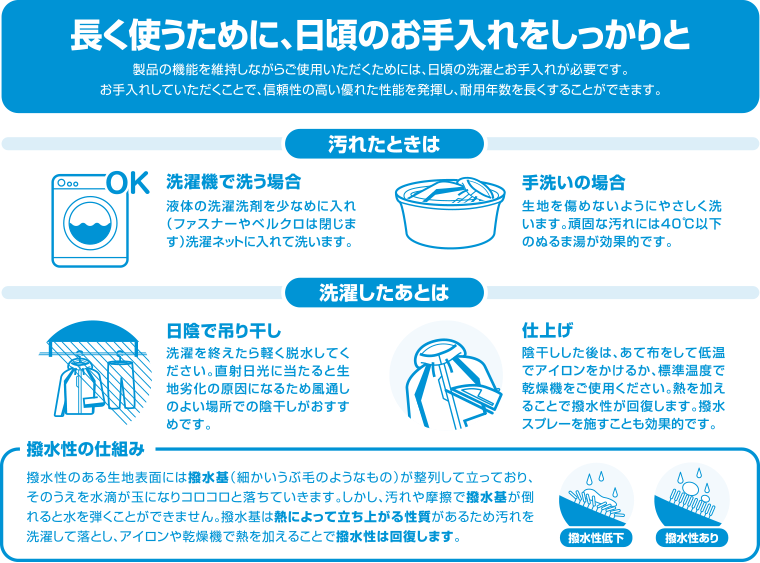 ※全てのウェアに同じ性能を保証するものではありません。使用方法・環境によって変わってきますので、ご了承ください。