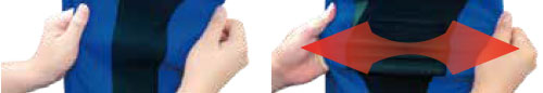 透湿性・防水性・防風性を兼ね備えたゴアテックスファブリクスを本体生地に採用。新たに搭載した伸縮素材[GORE-TEX Stretch Technology Garments]が、身体可動に合わせ伸縮することで、動きやすさを実現しました。