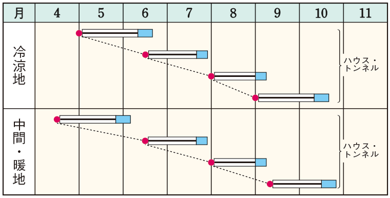 播種→8月中旬~9月上旬 収穫→12月上旬から2月末